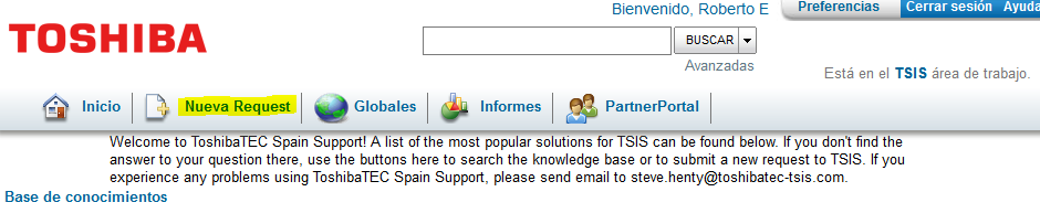Para acceder es necesario tener una cuenta de ToshibaPortal (PartnerNet) y solicitar el acceso a FootPrints a consulta@toshibaprinting.es indicando el nombre de usuario y la compañía.
