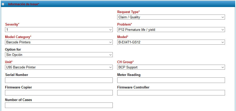 4. Rellena el mayor número de campos de los cuales puedas dar información, si algún campo necesario no se rellena, FootPrints mostrará un mensaje de advertencia (los campos obligatorios están marcados en rojo y con un asterisco).
