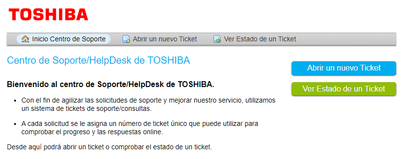 todos tus tickets en https://soporte.toshibaprinting.es desde la opción "Ver Estado de un Ticket".