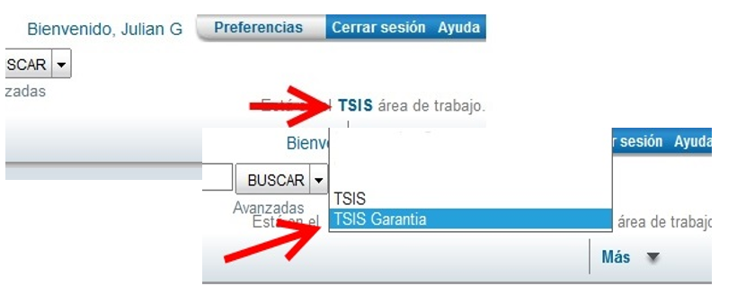 1. Para abrir una garantía cambiaremos al espacio TSIS Garantía