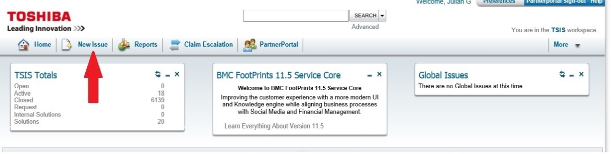 Para acceder es necesario tener una cuenta de ToshibaPortal (PartnerNet) y solicitar el acceso a FootPrints a soporte@toshibaprinting.es indicando el nombre de usuario y la compañía.