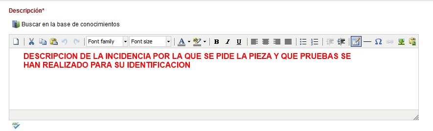 3. En el apartado descripción detallaremos por que se pide la pieza y que pruebas se han realizado para llegar a la conclusión de que está defectuosa.