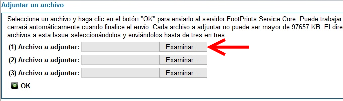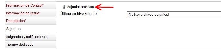 Si necesitamos adjuntar algún archivo adjunto, tales como fotografías, log de máquina, u otros que se soliciten iremos al apartado adjuntos, donde anexaremos los archivos necesarios.