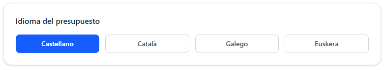 Ejemplo: el comercial utiliza la aplicación en euskera, pero puede crear presupuestos en euskera o castellano según el idioma de preferencia de sus clientes.