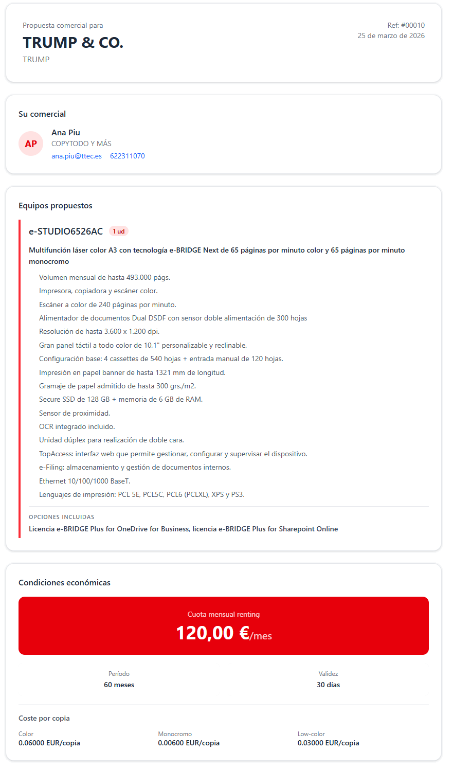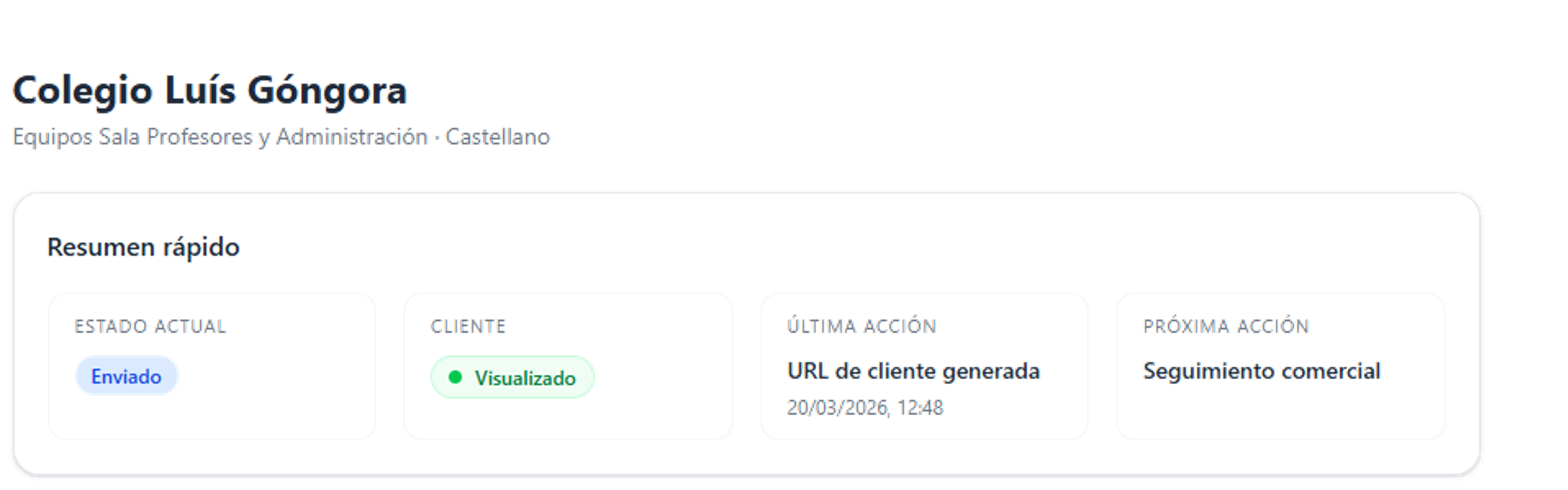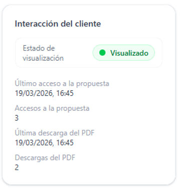Esta funcionalidad aporta una señal comercial muy valiosa, ya que permite al comercial y al supervisor saber si la propuesta ha despertado interés real y mejorar el seguimiento de cada oportunidad.