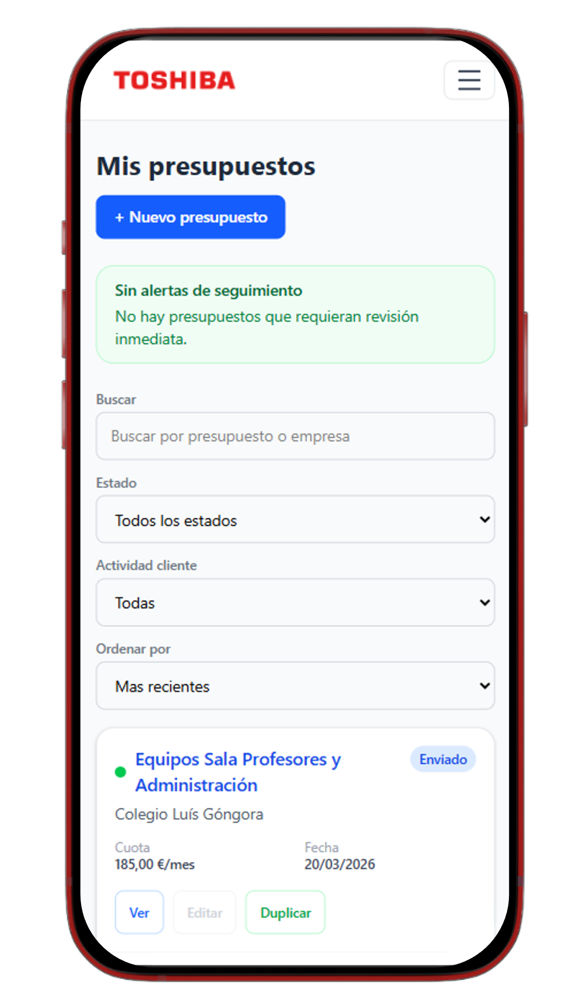 Toshiba Presupuestos centraliza en una única herramienta todo el ciclo de una propuesta comercial.