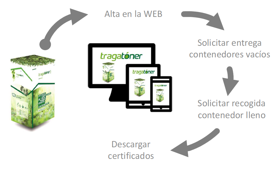 Deberás regístrate en la plataforma y obtener tu código de identificación como Punto de Recogida. Web de Registro: https://tragatoner.es/plataforma-de-gestion/