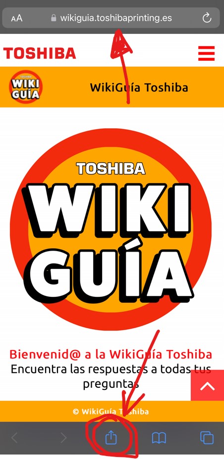 2. Pulsa en el botón de compartir (el icono central de la barra inferior de Safari)