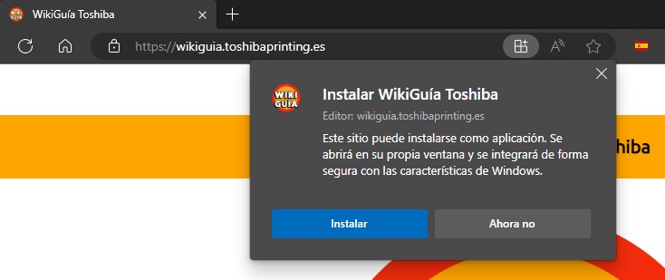 2. Haga clic en instalar aplicación (en la barra de direcciones)